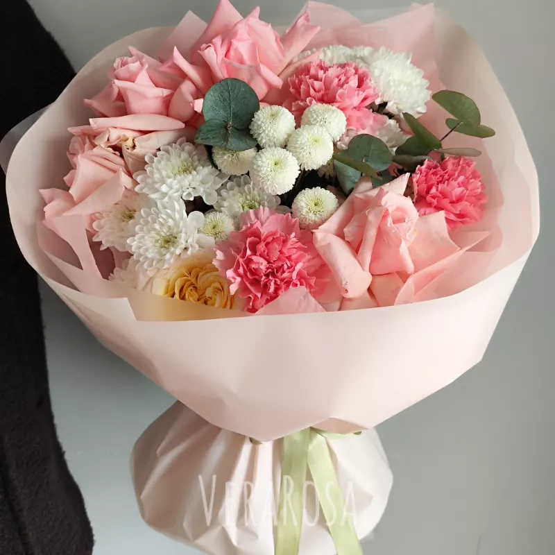 Букет был собран и скорректирован согласно моим пожеланиям, заранее обговаривали все нюансы, в процессе сборки мне прислали фото и видео. Сам букет отлично держался целый день, а потом еще и дома стоял неделю😍