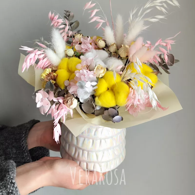 Букет был собран и скорректирован согласно моим пожеланиям, заранее обговаривали все нюансы, в процессе сборки мне прислали фото и видео. Сам букет отлично держался целый день, а потом еще и дома стоял неделю😍