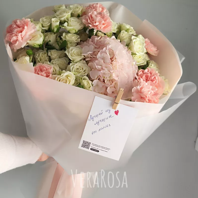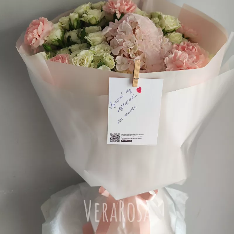 Букет был собран и скорректирован согласно моим пожеланиям, заранее обговаривали все нюансы, в процессе сборки мне прислали фото и видео. Сам букет отлично держался целый день, а потом еще и дома стоял неделю😍
