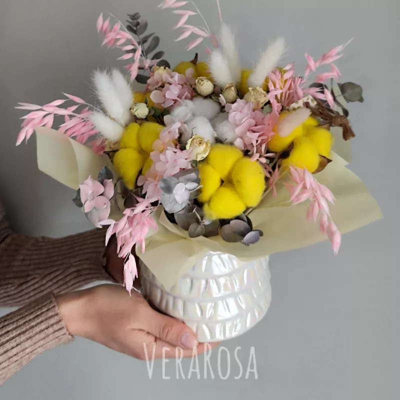 Букет был собран и скорректирован согласно моим пожеланиям, заранее обговаривали все нюансы, в процессе сборки мне прислали фото и видео. Сам букет отлично держался целый день, а потом еще и дома стоял неделю😍