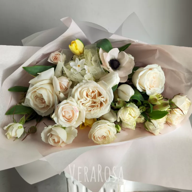 Букет был собран и скорректирован согласно моим пожеланиям, заранее обговаривали все нюансы, в процессе сборки мне прислали фото и видео. Сам букет отлично держался целый день, а потом еще и дома стоял неделю😍
